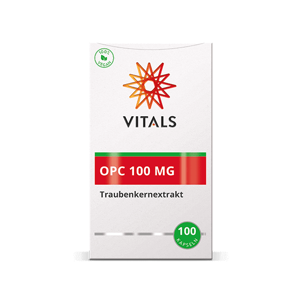OPC 100 mg von Vitals enthält einen hohen Gehalt an oligomeren Proanthocyanidinen (OPCs) aus Traubenkernen. Das sind Bioflavonoide, die aus Catechin- und Epicatechin-Einheiten bestehen. „Oligomer“ bedeutet, dass es sich um spezifische Proanthocyanidine mit einer kurzen Kettenlänge handelt. Diese haben nämlich eine bessere Bioverfügbarkeit als längerkettige Proanthocyanidine.